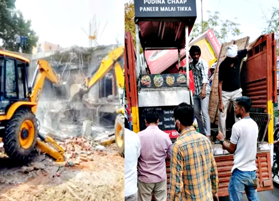 दिल्ली के जीटीबी इन्क्लेव इलाके में चला एमसीडी का बुलडोजर