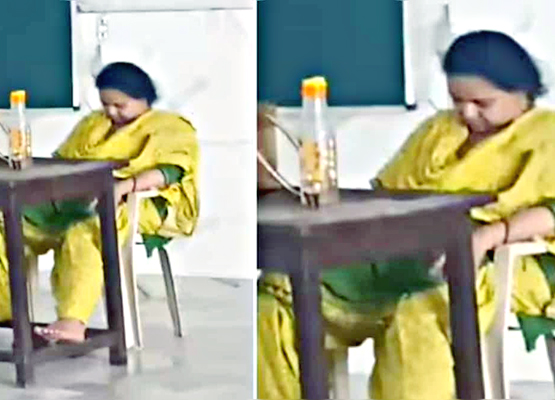 कुर्सी पर बैठी और खर्राटे लेने लगी शिक्षिका, बीएसए ने दिए जांच के आदेश