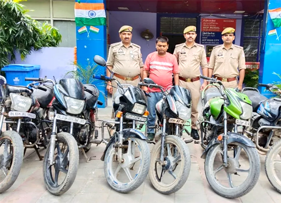 एसीपी वेव सिटी प्रियाश्री पाल के मुताबिक क्रासिंग रिपब्लिक थाना पुलिस रिछपाल गढ़ी में शुक्रवार की देर शाम वाहनों की चेकिंग कर रही थी। इसी दौरान संदिग्ध युवक से बाइक के कागजात मांगे तो वह नहीं दिखा पाया। पकड़े गए युवक ने अपना नाम खोड़ा निवासी नरेंद्र कुमार मांझी बताया। उसकी निशानदेही पर चोरी की पांच अन्य बाइक भी बरामद की गई हैं।