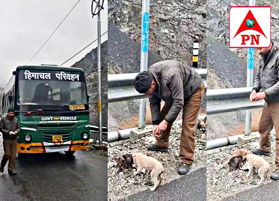 हिमाचल रोडवेज के ड्राइवर ने बस रोक बारिश में भीग रहे भूखे पिल्लों को खिलाई रोटी