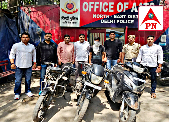 राजीव कुमार गौड़/दिल्ली ब्यूरो। उत्तर-पूर्वी जिले की एएटीएस टीम ने एक सक्रिय ऑटो-लिफ्टर को गिरफ्तार कर तीन चोरी की मोटरसाइकिलें बरामद की हैं। इस गिरफ्तारी से मोटर वाहन चोरी के तीन मामलों का खुलासा हो गया है। एएटीएस टीम लंबे समय से जिले में ऑटो-लिफ्टिंग गतिविधियों में शामिल व्यक्तियों पर निगरानी रख रही थी। 2 अप्रैल 2026 को मिली गुप्त सूचना के आधार पर इंस्पेक्टर योगेश वशिष्ठ के नेतृत्व में टीम ने नंद नगरी स्थित डी-1 पार्क के पास एक काले रंग की हीरो सुपर स्प्लेंडर मोटरसाइकिल (नंबर DL5SAJ-3993) पर सवार व्यक्ति को रोका। पूछताछ में उसकी पहचान अंकित (28 वर्ष), पुत्र सतीश कुमार, निवासी हरिजन बस्ती, मंडोली एक्सटेंशन, दिल्ली के रूप में हुई।
