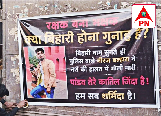 पश्चिमी दिल्ली की प्रजापति कॉलोनी में हेड कांस्टेबल नीरज ने पांडव को गोली मारकर हत्या कर दी, क्योंकि उसने खुद को बिहारी बताया था। पांडव के परिवार ने न्याय की मांग करते हुए जगह-जगह पोस्टर लगाए हैं, जबकि आरोपी हेड कांस्टेबल गिरफ्तार हो चुका है।
