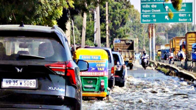 बिना बारिश के गुरुग्राम की सड़क पर भरा दो फुट पानी, ऑफिस पहुंचने में परेशान हो रहे लोग